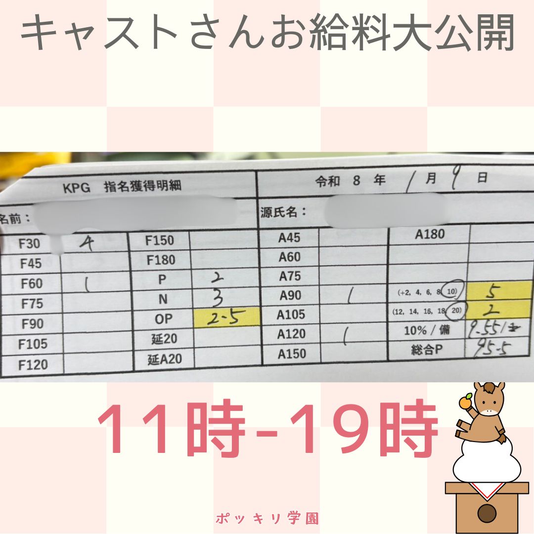 1月のキャストさんお給料大公開!!