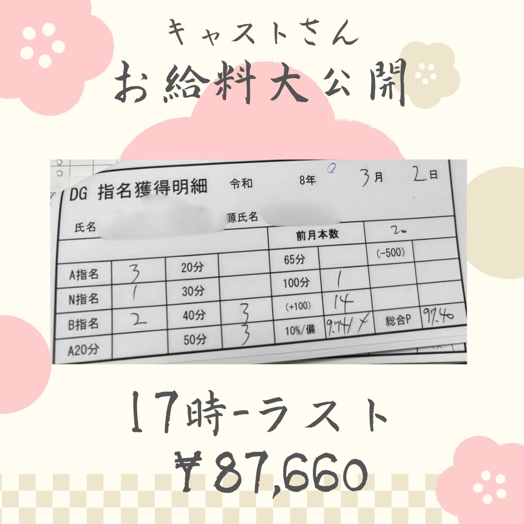 電車ごっこ2日の女の子実際のお給料はこちら!【17時-ラスト】