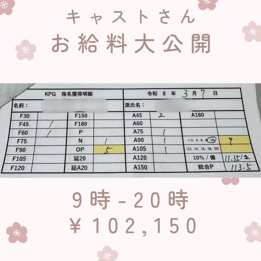 ポッキリ学園7日の女の子お給料はこちら!!【9時-20時】