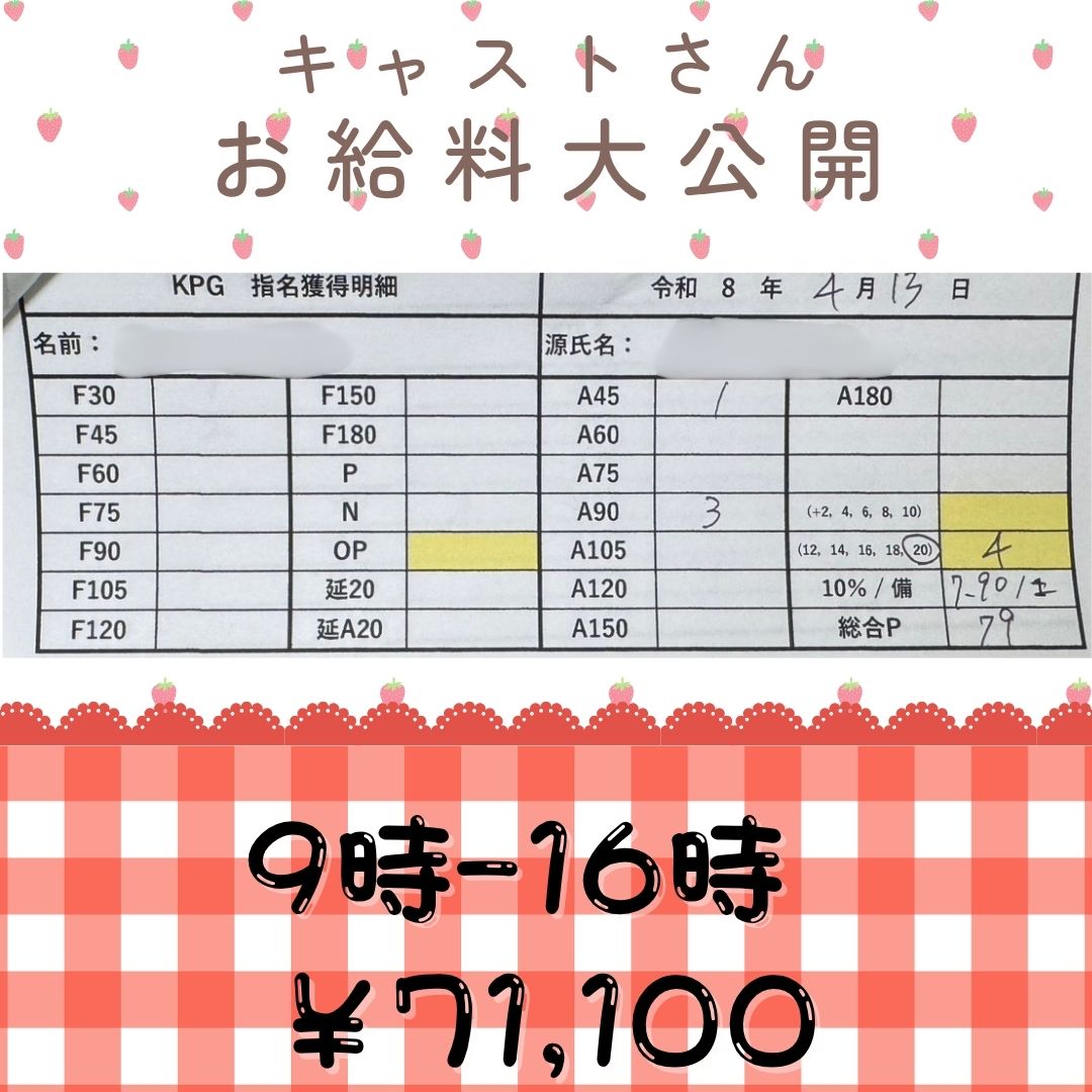 4月のキャストさんお給料大公開!!
